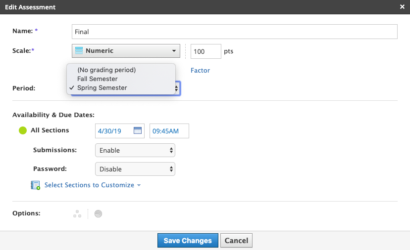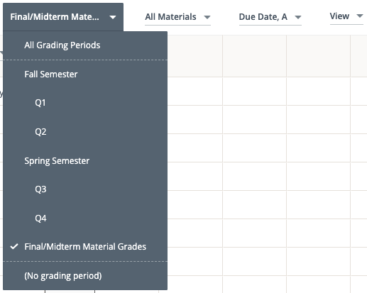 - إذا تمت محاذاة اختبار منتصف العام أو اختبار نهائي مع الفترات الفرعية خلال فترة التقدير، يتم ترجيحها مقابل تلك الفترات الفرعية ويتم حسابها في تقييم "فترة التقدير" تلك.