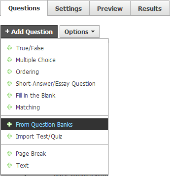 - يمكنك إضافة جميع الأسئلة إلى بنك الأسئلة من خلال النقر فوق الخيارات.