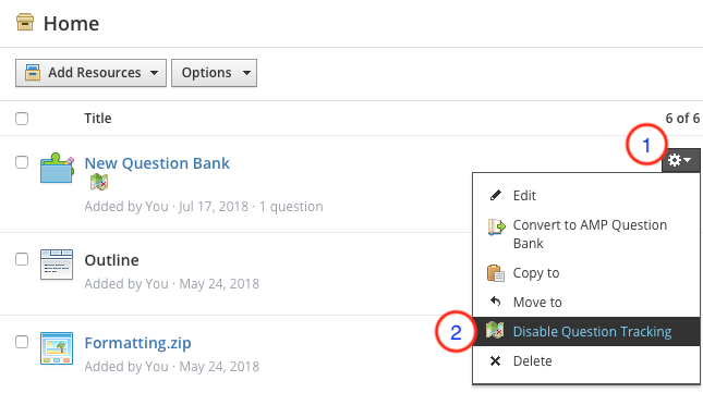 - إذا كنت قد أنشأت بنك أسئلة مغلقًا عن طريق الخطأ، فأنشئ بنك أسئلة جديدًا دون تمكين ميزة تمكين تتبع السؤال. انسخ الأسئلة من البنك المغلق في بنك أسئلة جديد.