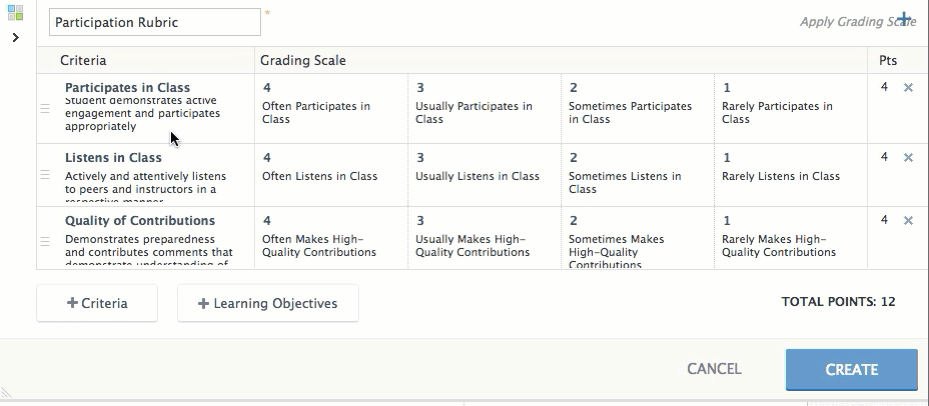 لاستبدال مقياس مخصَّص من مقررك بمقياس تصحيح القاعدة، انقر فوقتطبيق مقياس تصحيحفي الزاوية العلوية اليمنى، ثم حدِّد المقياس القائم على النقاط من القائمة.