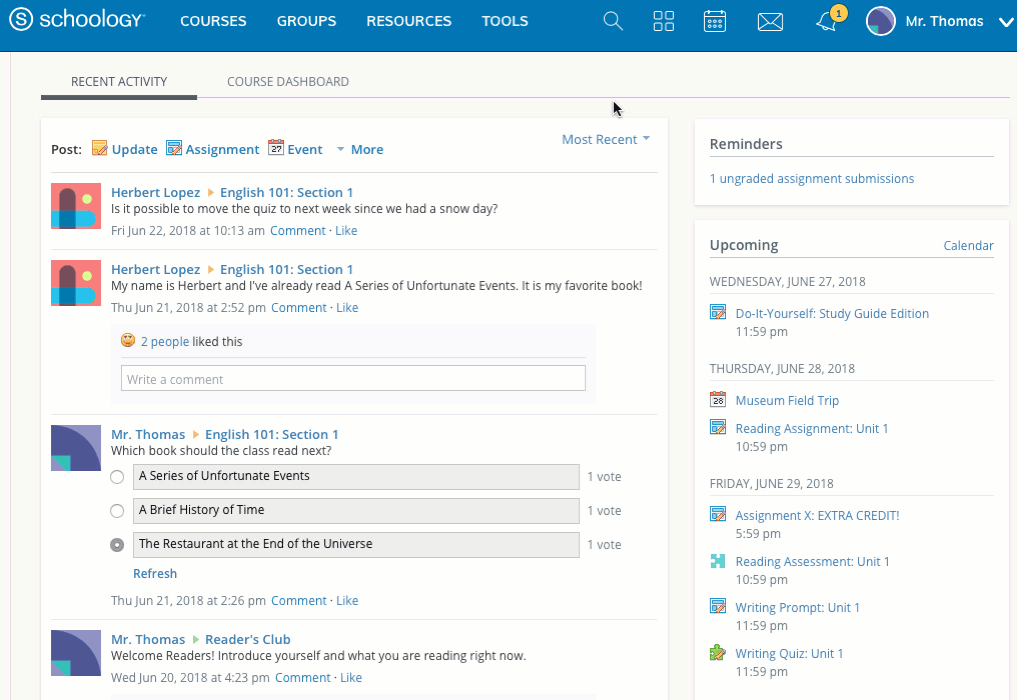 - المنظمة (إصدار المؤسسة): الميزة مرئية للمستخدمين داخل منظمتك على إصدار المؤسسة. على سبيل المثال، إذا كنت جزءًا من مدرسة ثانوية على Schoology، فستكون الميزة مرئية للمستخدمين في مدرسة إعدادية على Schoology ومدرسة ابتدائية على Schoology.