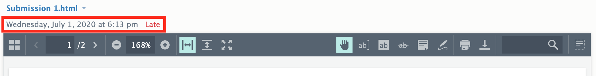 يمكن للمعلمين عرض تاريخ ووقت الإرسال من المناطق التالية: